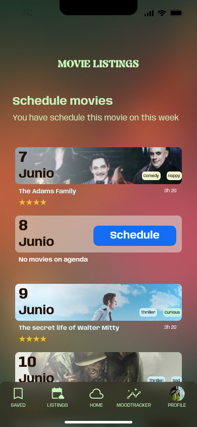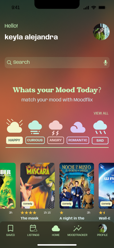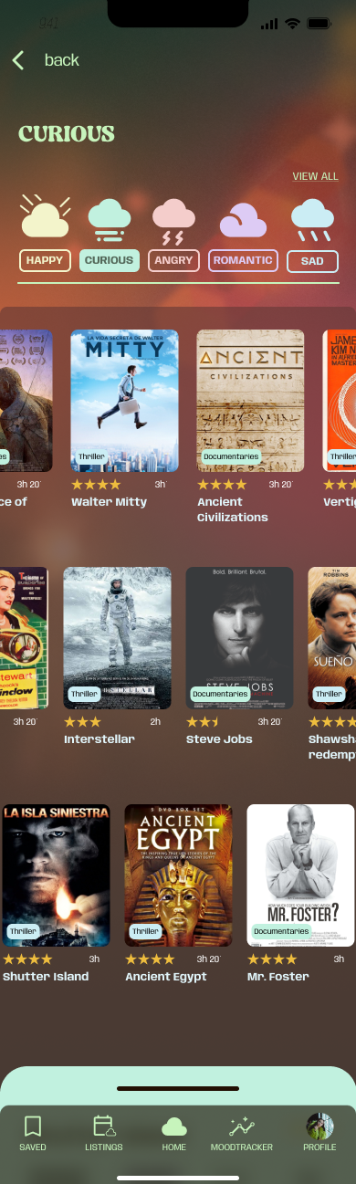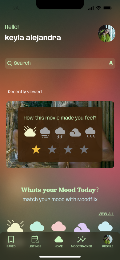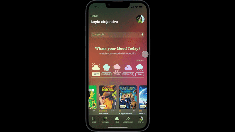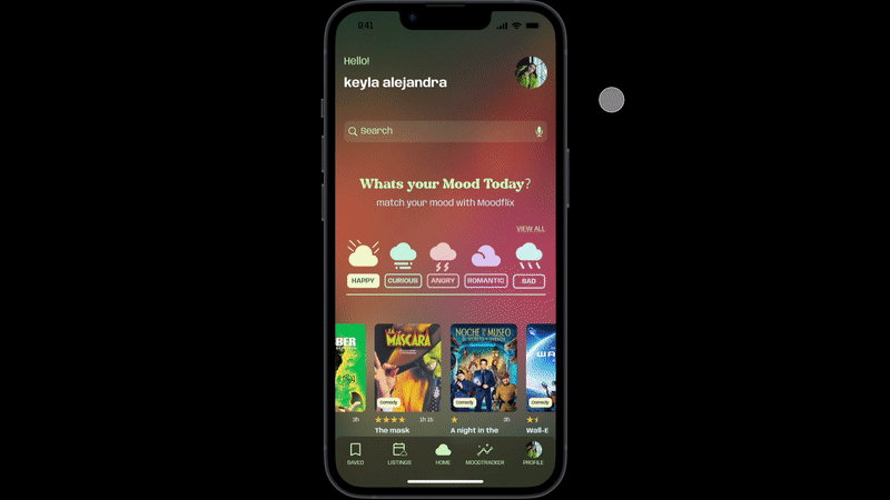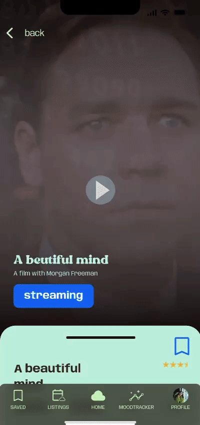 MoodFlix is designed to evoque how fluid emotions are. Empathising with the user about how difficult it is the emotional journey of self-awareness. Like getting to understand one´s mood state.